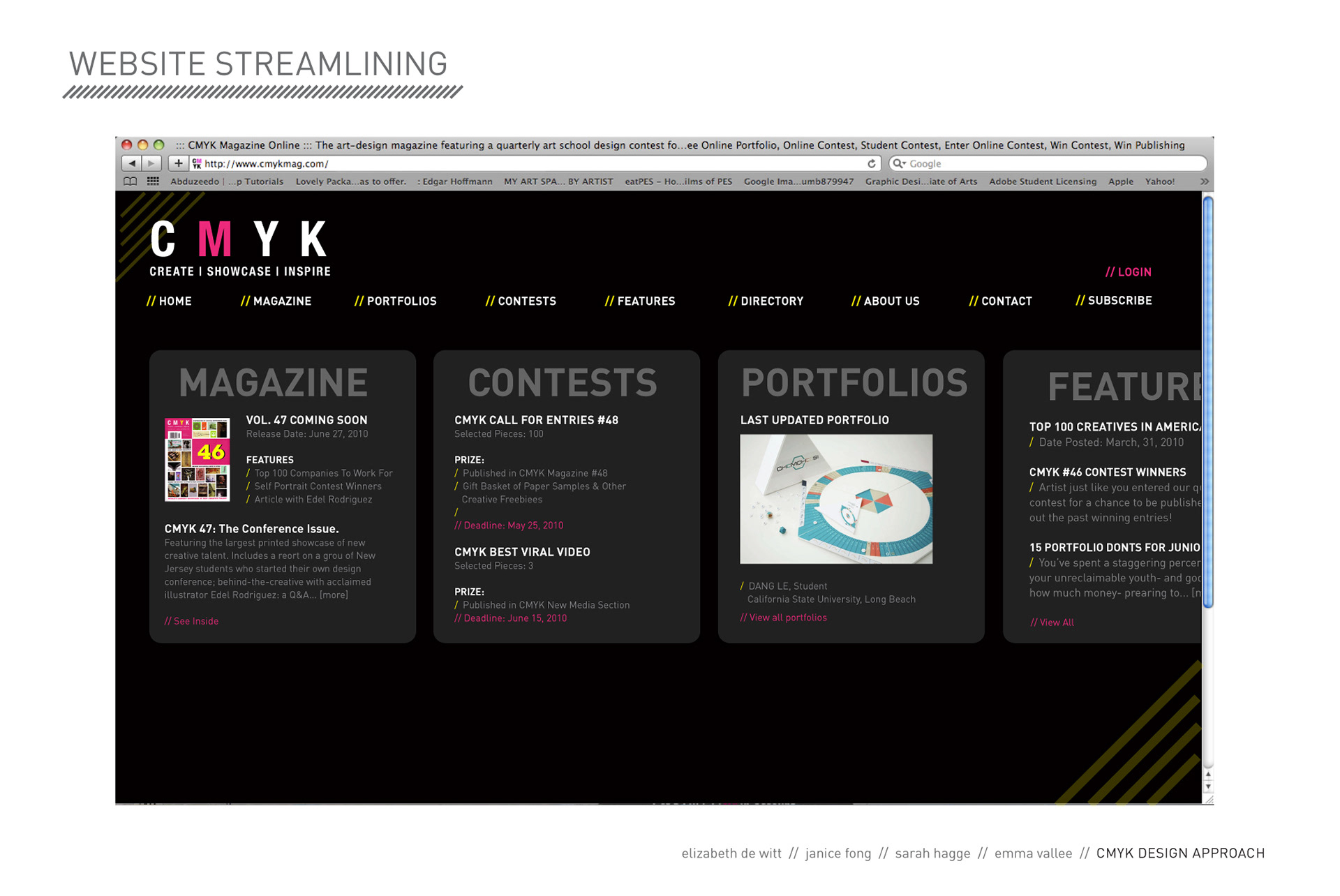 We were approached by Curtis Clarkson, the founder of CMYK Magazine, for a redesign. Their focus was the website and an interactive way to advertise and gain subscribers. The following are slides from our final presentation including some of the research synopses, a new website design, and a smart phone application to fulfill the interactive portion.